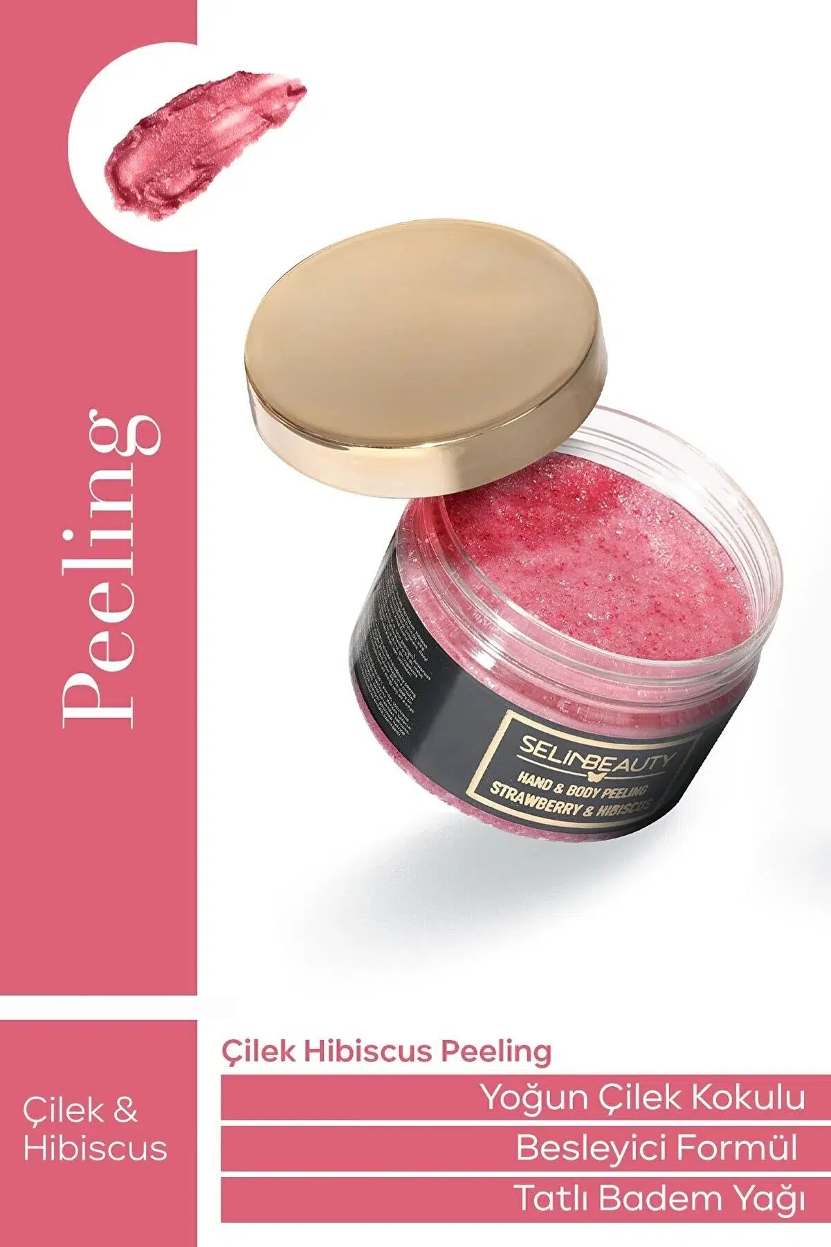 SELİN BEAUTY EL VE VÜCUT PEELİNG ÇİLEK & HİBİSCUS Arınmış, temiz, pürüzsüz bir cilt görünümü için peeling ideal bir yöntem. Peeling yapmak artık bakım rutinimizin vazgeçilmez adımlarından.Tüm cildimizi yağdan, kirden, kalıntılardan derinlemesine arındırabiliyoruz. SELİN BEAUTY HAND &BODY PEELİNG