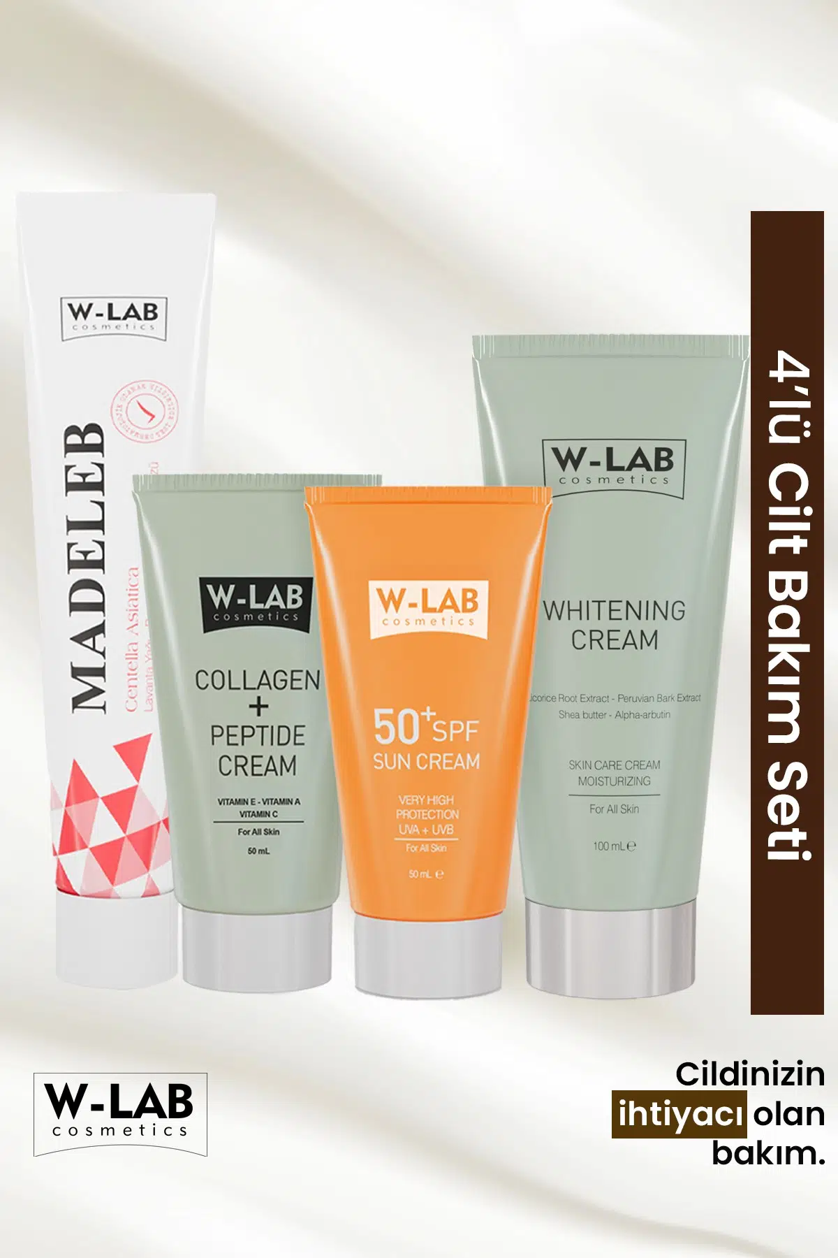 W-Lab madeleb 40 ml + W-Lab beyazlatıcı krem + W-Lab sun cream 50+ spf (güneş koruyucu) + W - Lab anti-Aging kolajen peptit gençleştirici krem
